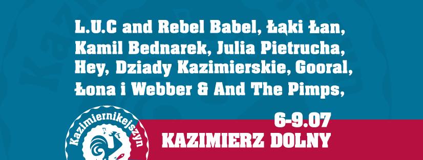 W tym roku wystąpią: HEY, Łąki Łan, Kamil Bednarek, Gooral, Łona i Webber, Julia Pietrucha, L.U.C & @Rebel Babel, DZIADY KAZIMIERSKIE,SunnyLand, Brodacze live act i BUM BUM ORKeSTAR.
